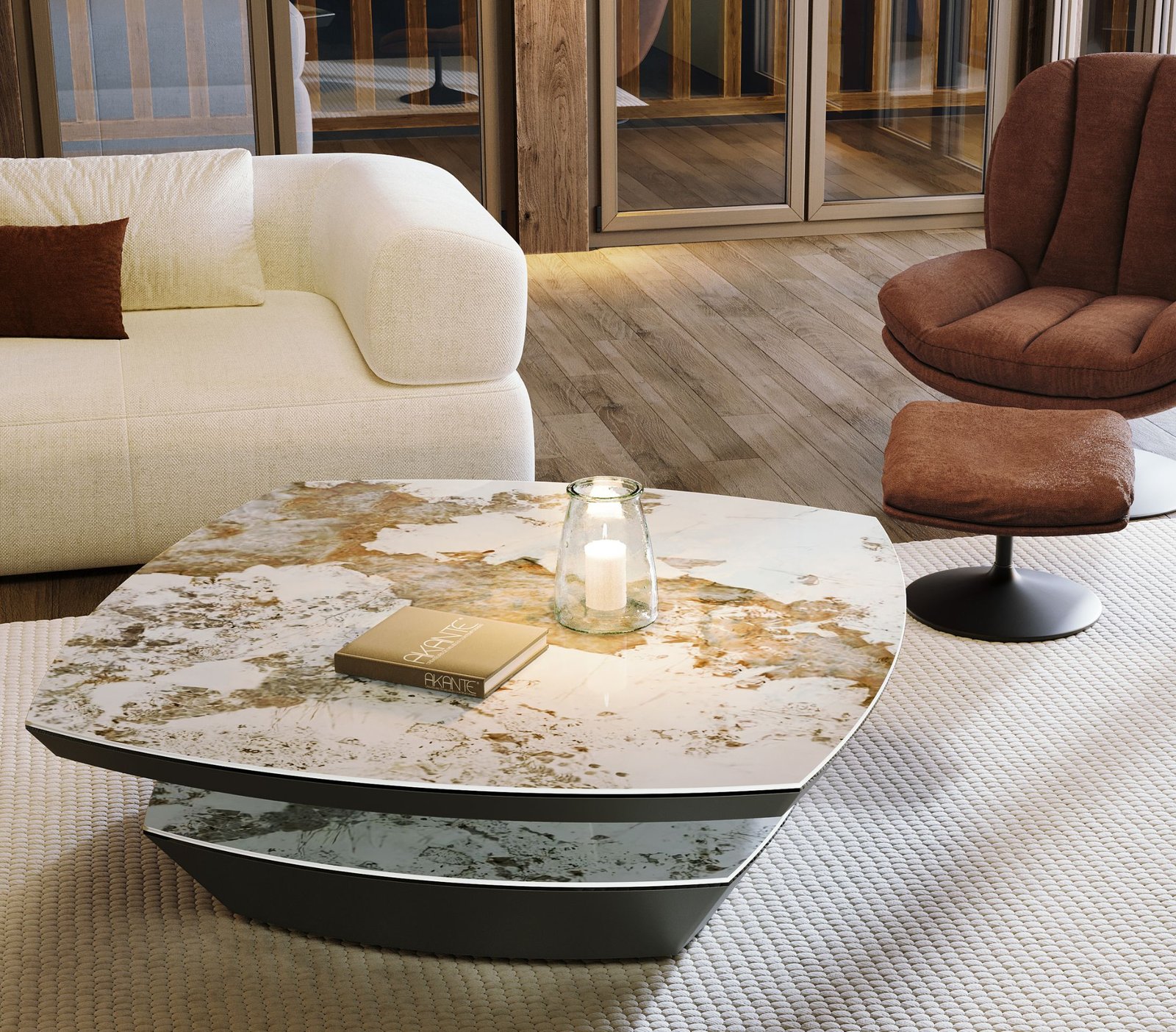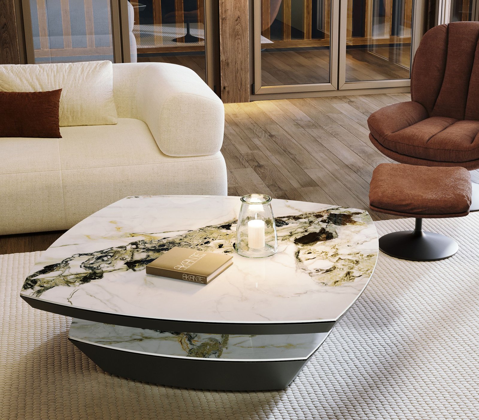 Šis modernus Akante kavos staliukas DOLMEN išsiskiria elegantišku dizainu ir solidumu. Užapvalintos kvadratinės formos  ir 120 x 120 cm dydžio stalviršis suteikia daug vietos įvairiems daiktams, o 38 cm aukštis yra idealus patogiam naudojimui svetainėje.