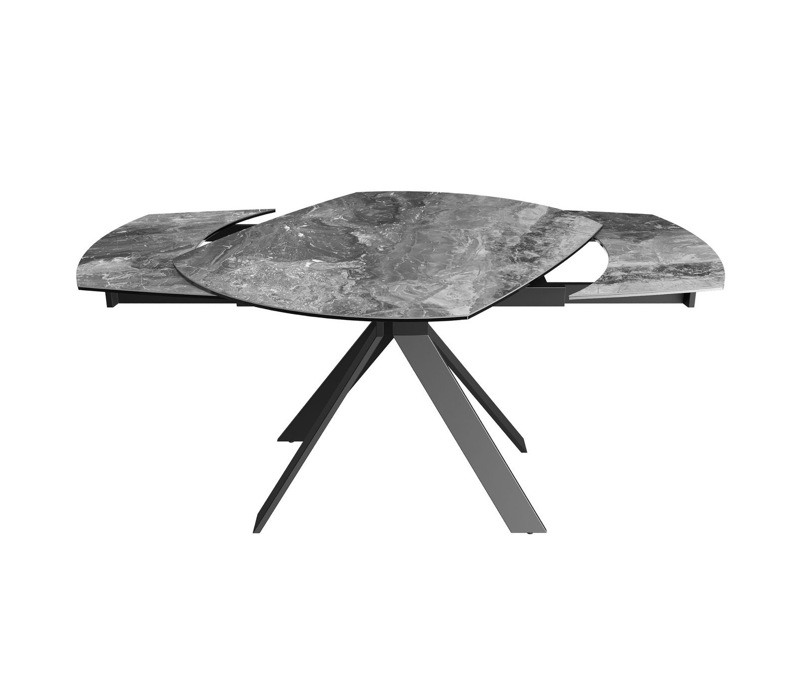 Šis stalas turi patogią funkciją – paslėptą po stalviršiu unikalų mechanizmą. Lengvai pasukus pagrindinį stalviršį, po juo esančios dvi papildomos plokštės išsiskleidžia ir gauname valgomojo stalą su praplėtimu.