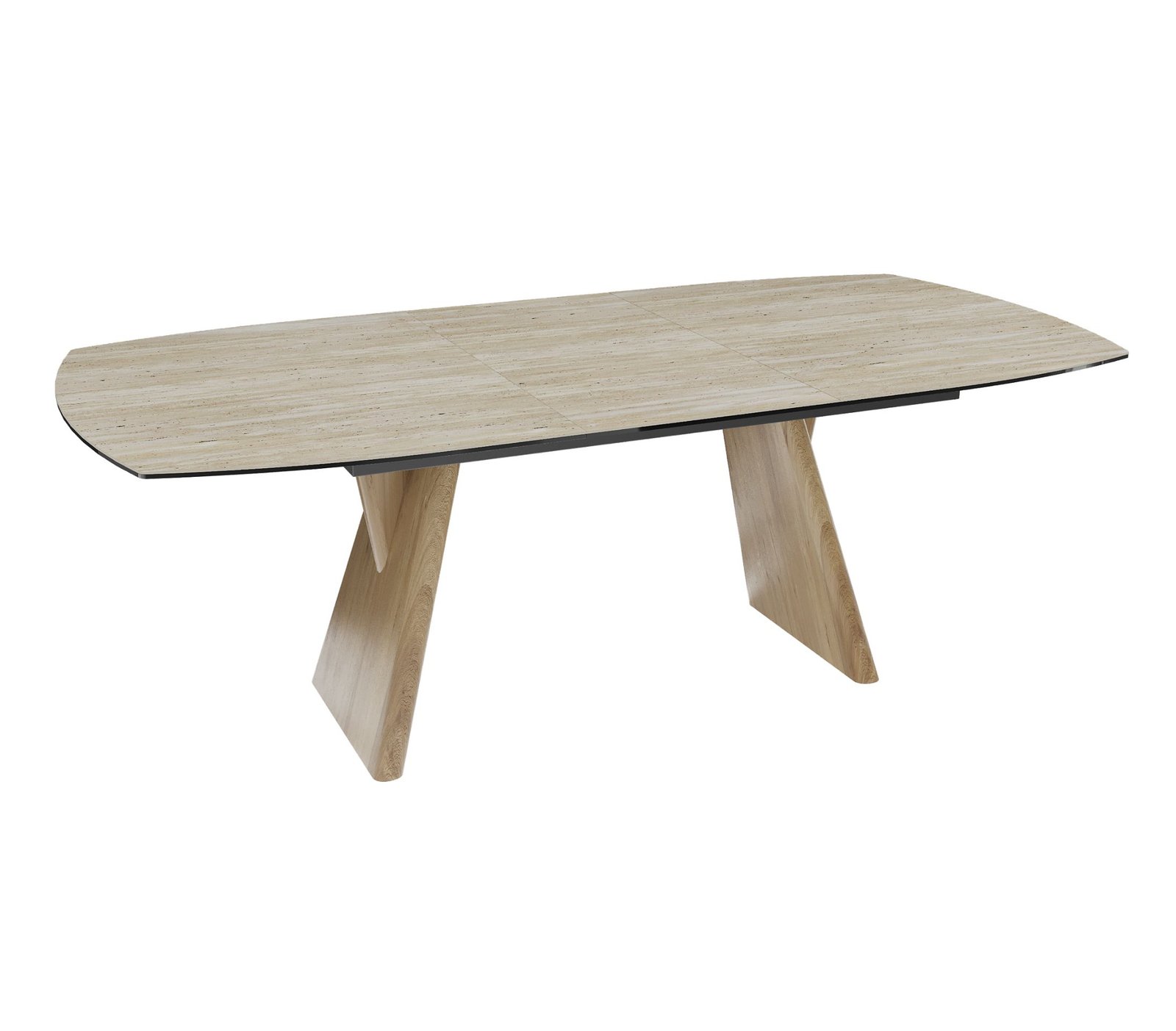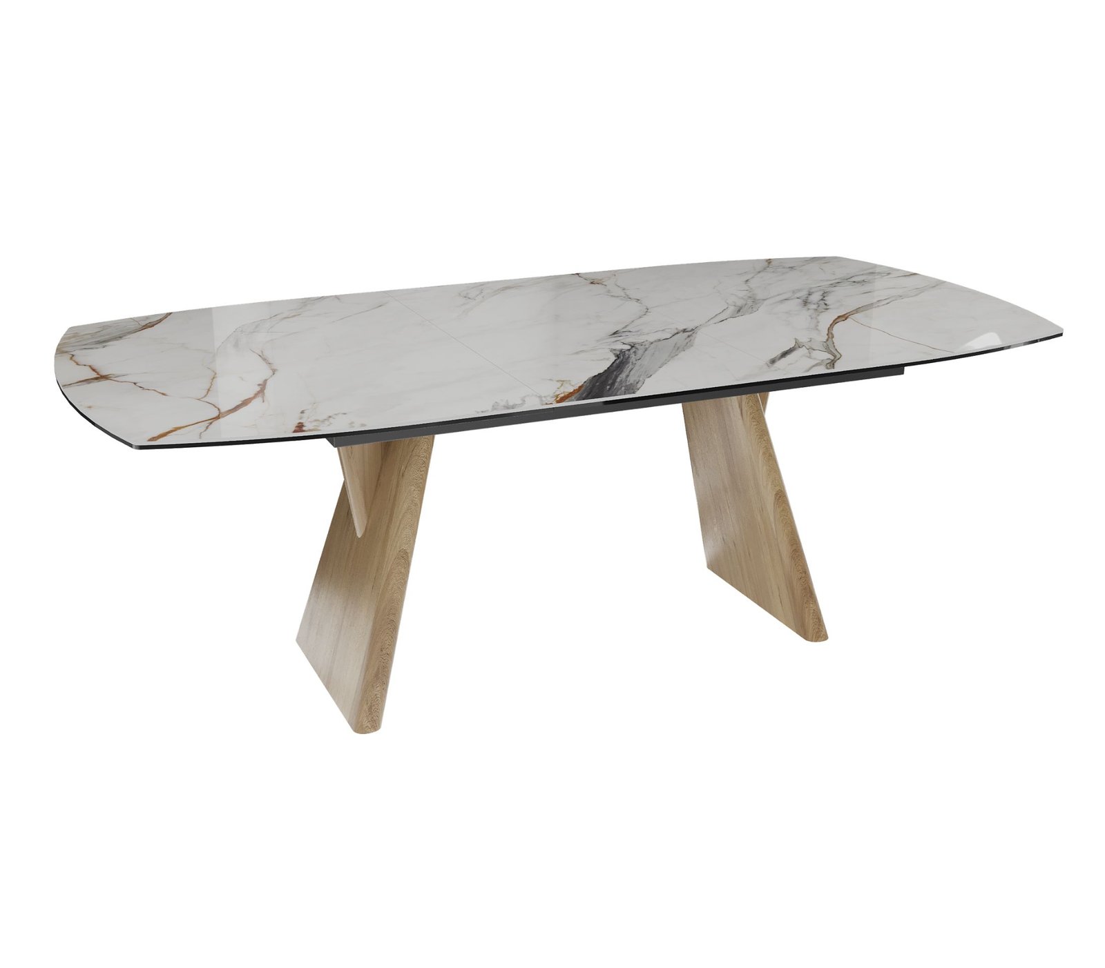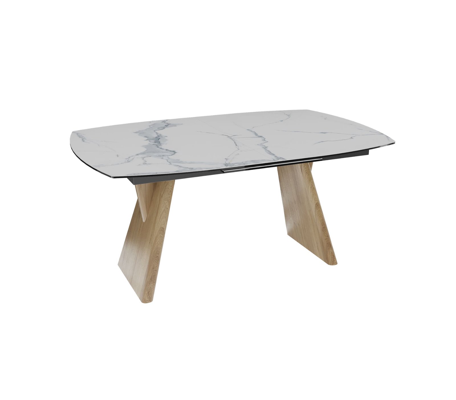 Akante valgomojo stalas su praplėtimu OMAHA išsiskiria modernia elegancija ir išskirtiniu dizainu, kuris tampa pagrindiniu interjero akcentu.