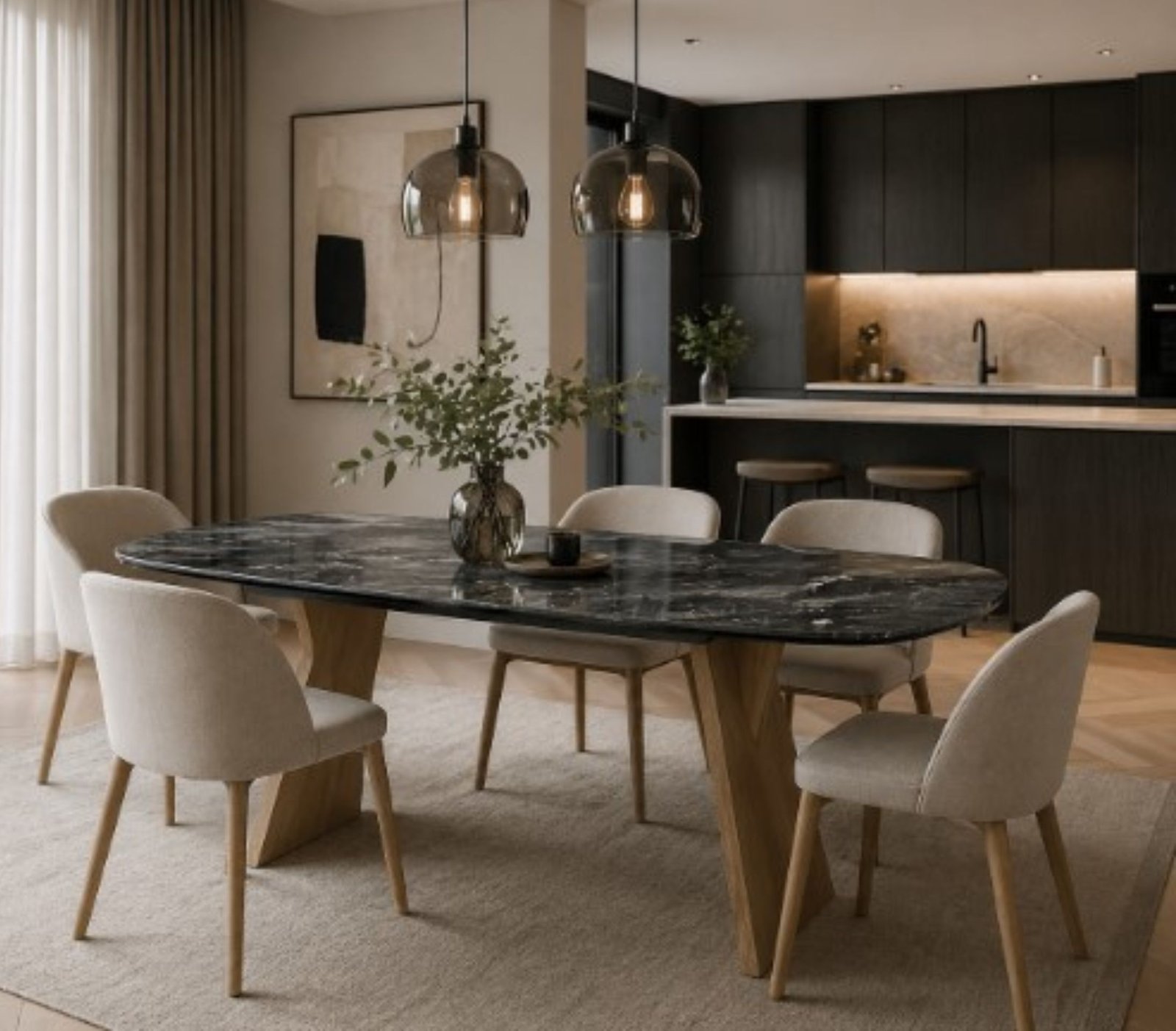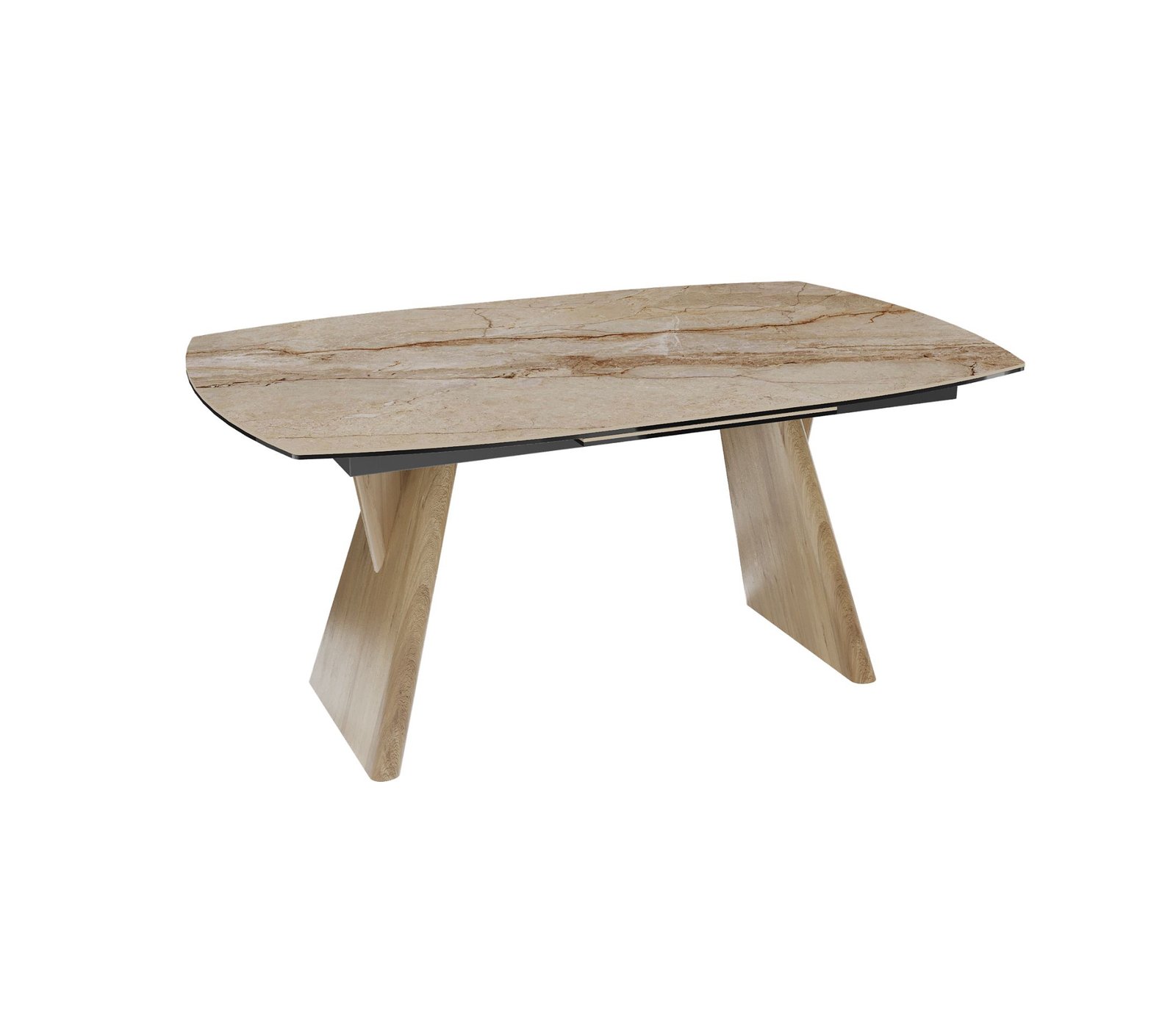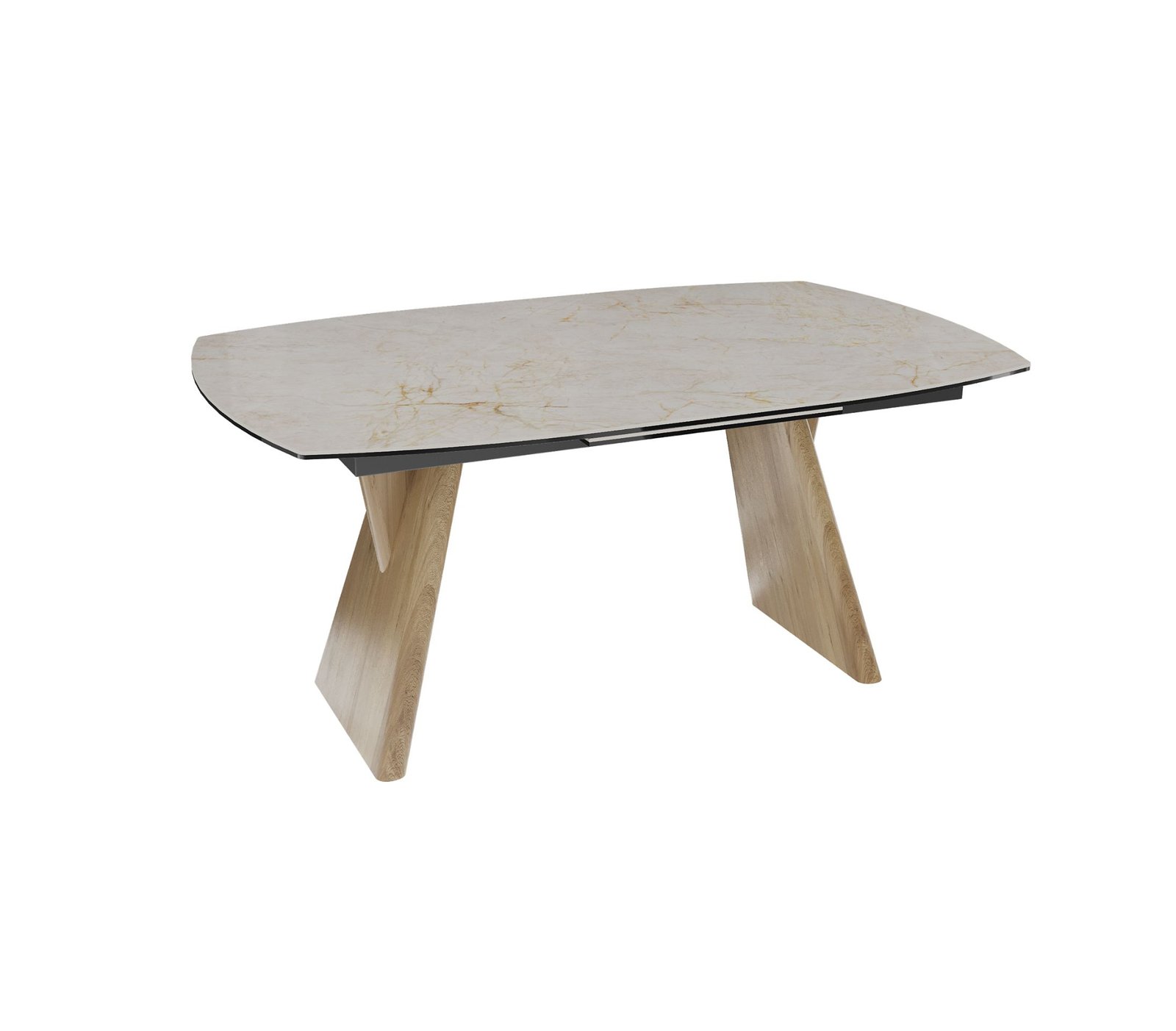 Akante valgomojo stalas su praplėtimu OMAHA išsiskiria modernia elegancija ir išskirtiniu dizainu, kuris tampa pagrindiniu interjero akcentu.