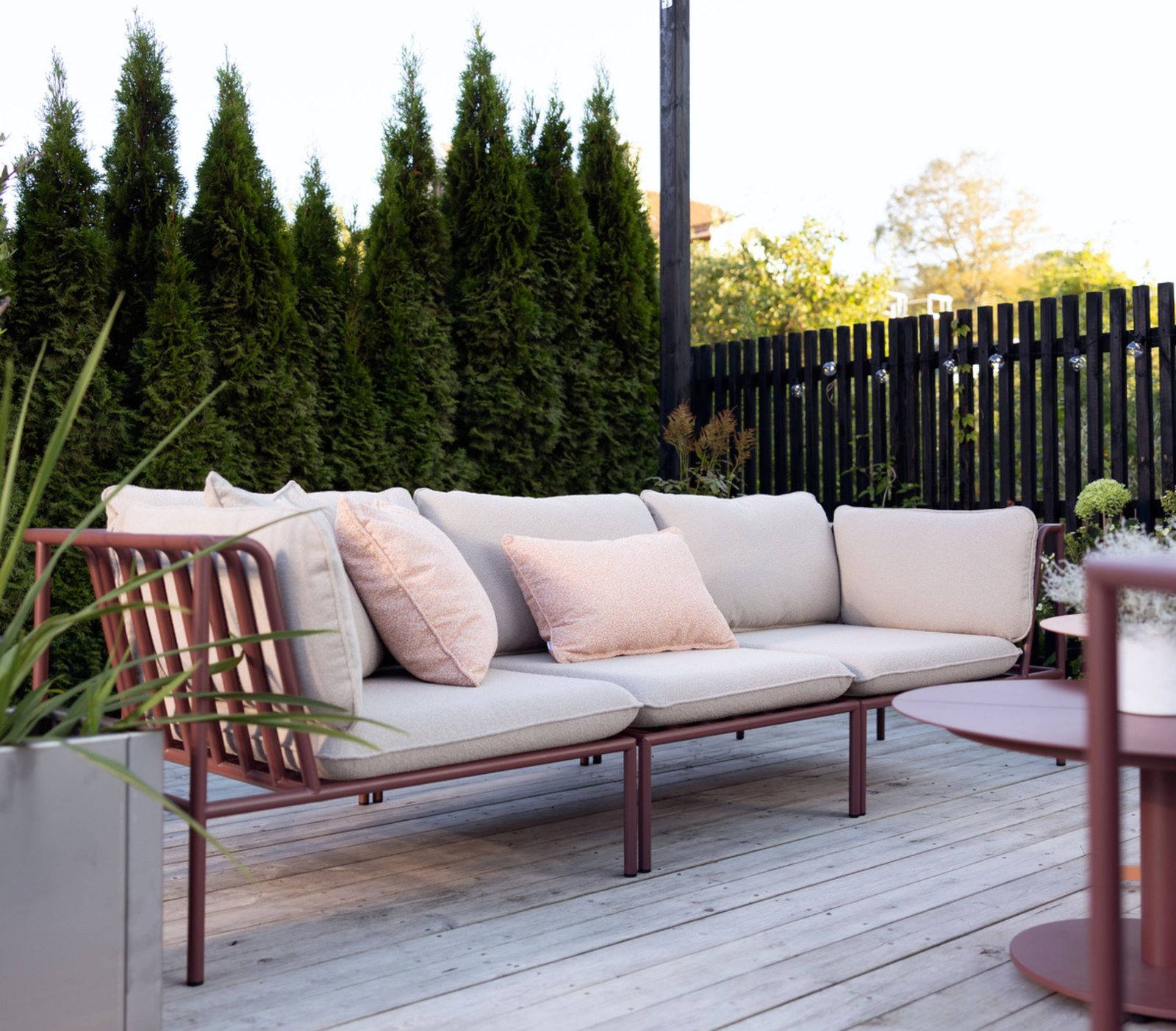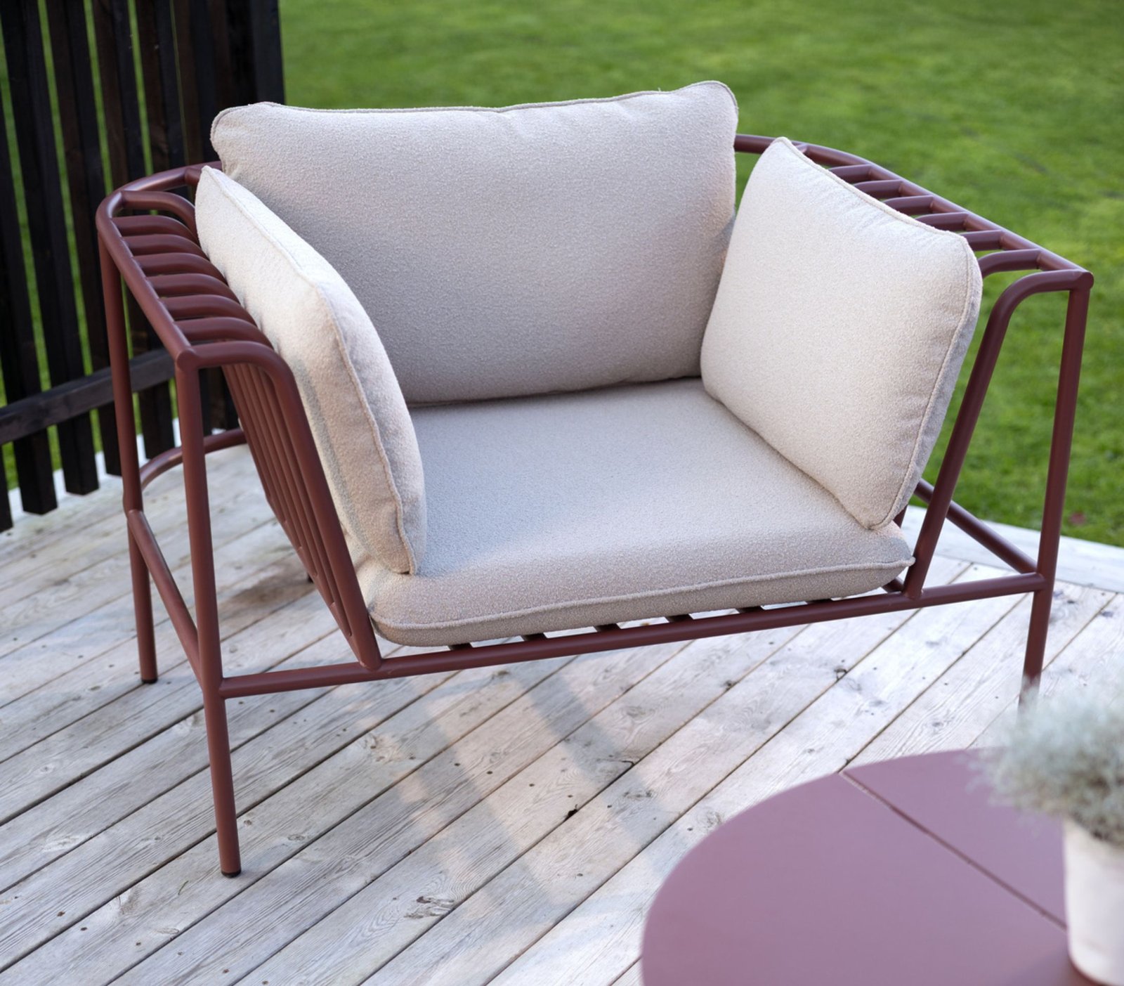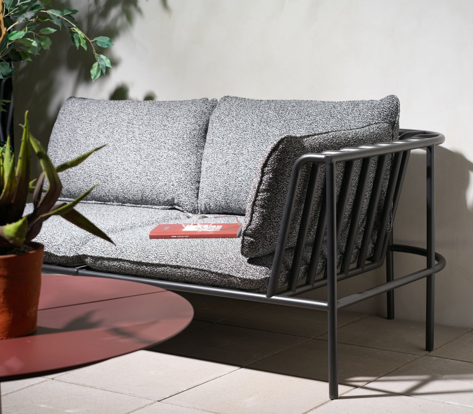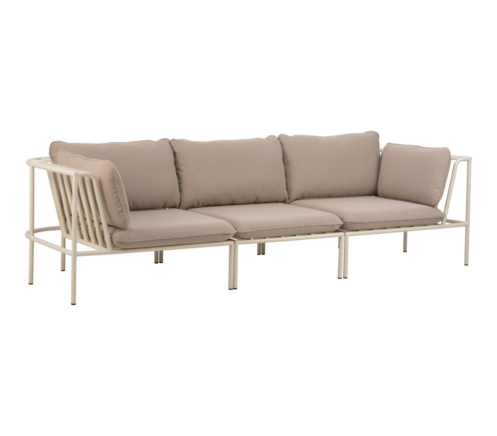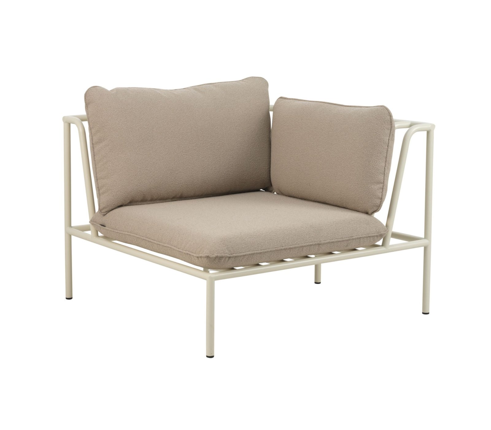 Lauko poilsio baldų komplektas COLLIER – tai modulinė kolekcija, pasižyminti minkštu pliušiniu audiniu ir elegantiškai išlenktais aliuminio rėmais. Lanksti ir lengvai surenkama, kiekviena baldo dalis pritvirtinama naudojant nepastebimas jungiamąsias detales. Galima rinktis iš kelių rėmo ir audinio spalvų. Kampiniai moduliai jungiami su viduriniais moduliais, todėl galima sukurti bet kokio dydžio sofą. Fotelį galima naudoti kaip atskirą akcentą arba derinti su sofa ar kampiniu variantu, taip sukuriant vientisą poilsio erdvę.
