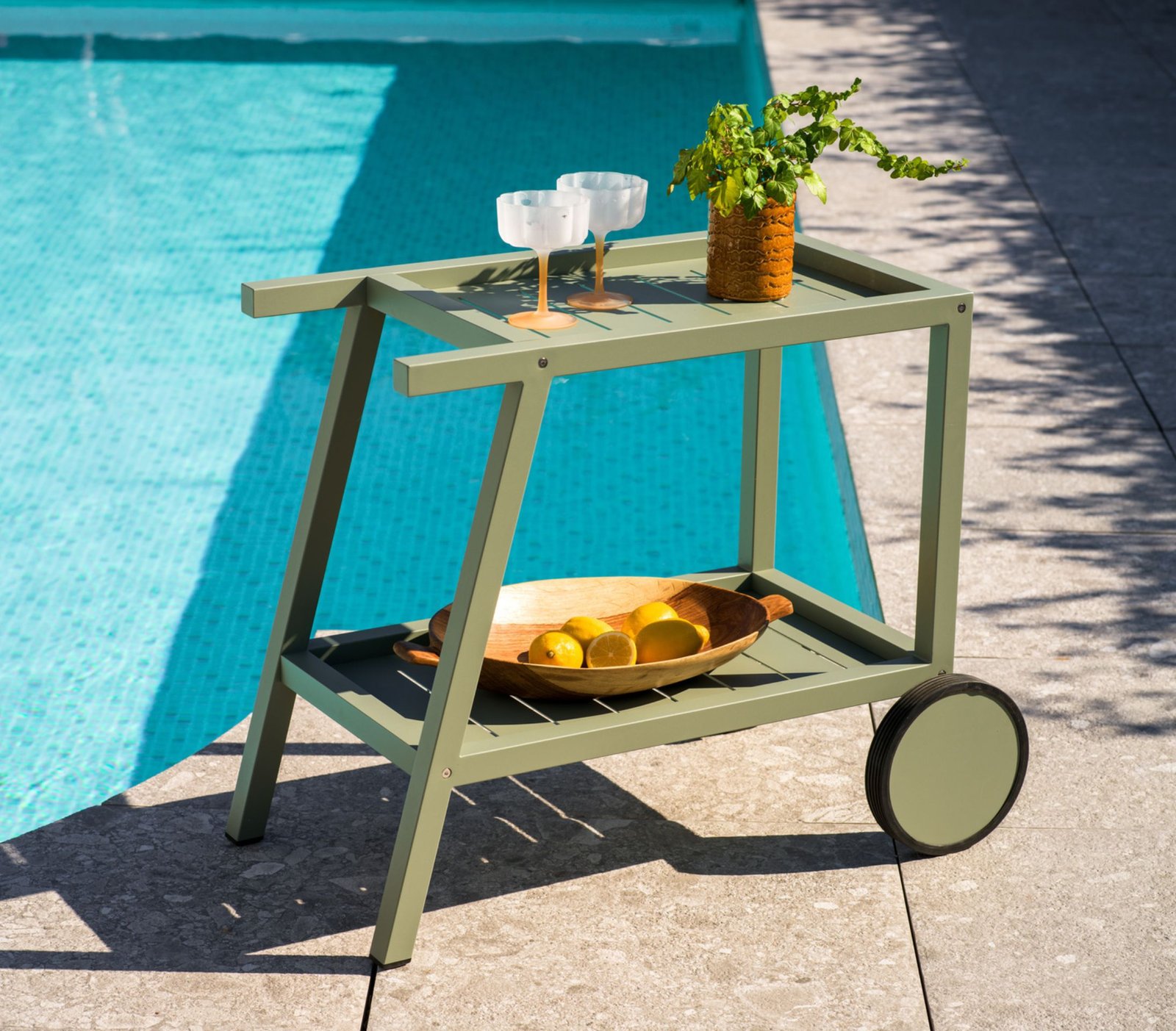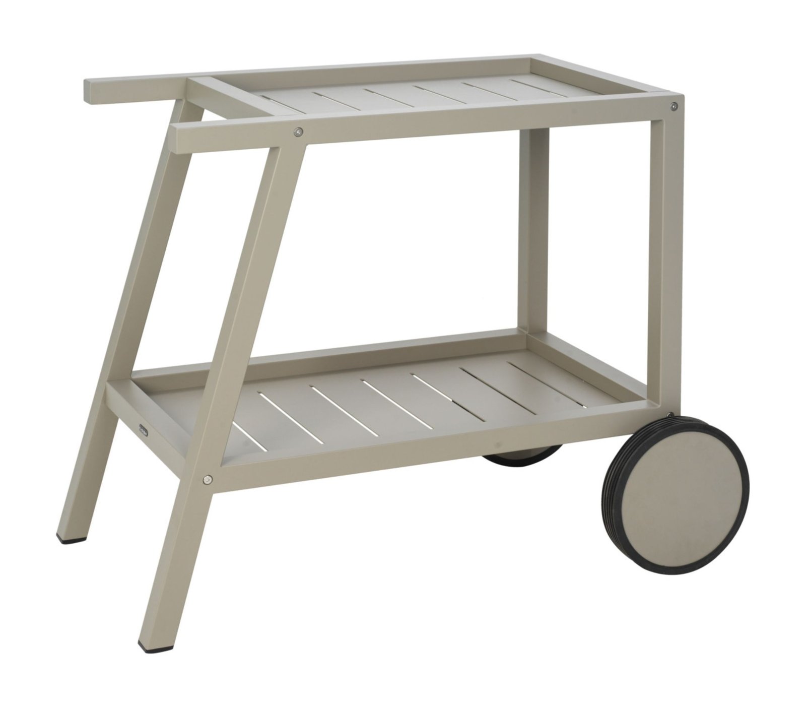 Minimalistinis, skandinaviško stiliaus lauko serviravimo vežimėlis SAMVARO yra tvirtas, praktiškas ir estetiškas. Puikiai tinka kaip pagalbinis stalas, nes jį lengva perkelti ten, kur reikia. Skirtas patogiam maisto, gėrimų ar indų pernešimui terasoje, sode ar balkone.