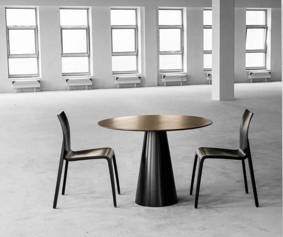 PlyCollection Apvalus valgomojo stalas CONE džiugina savo dizainu ir kokybe. Tvirtas ir šiuolaikiškas stalas gali būti kelių dydžių bei skirtingų stalviršių, tad lengvai pritaikysite prie savo poreikių ir interjero.