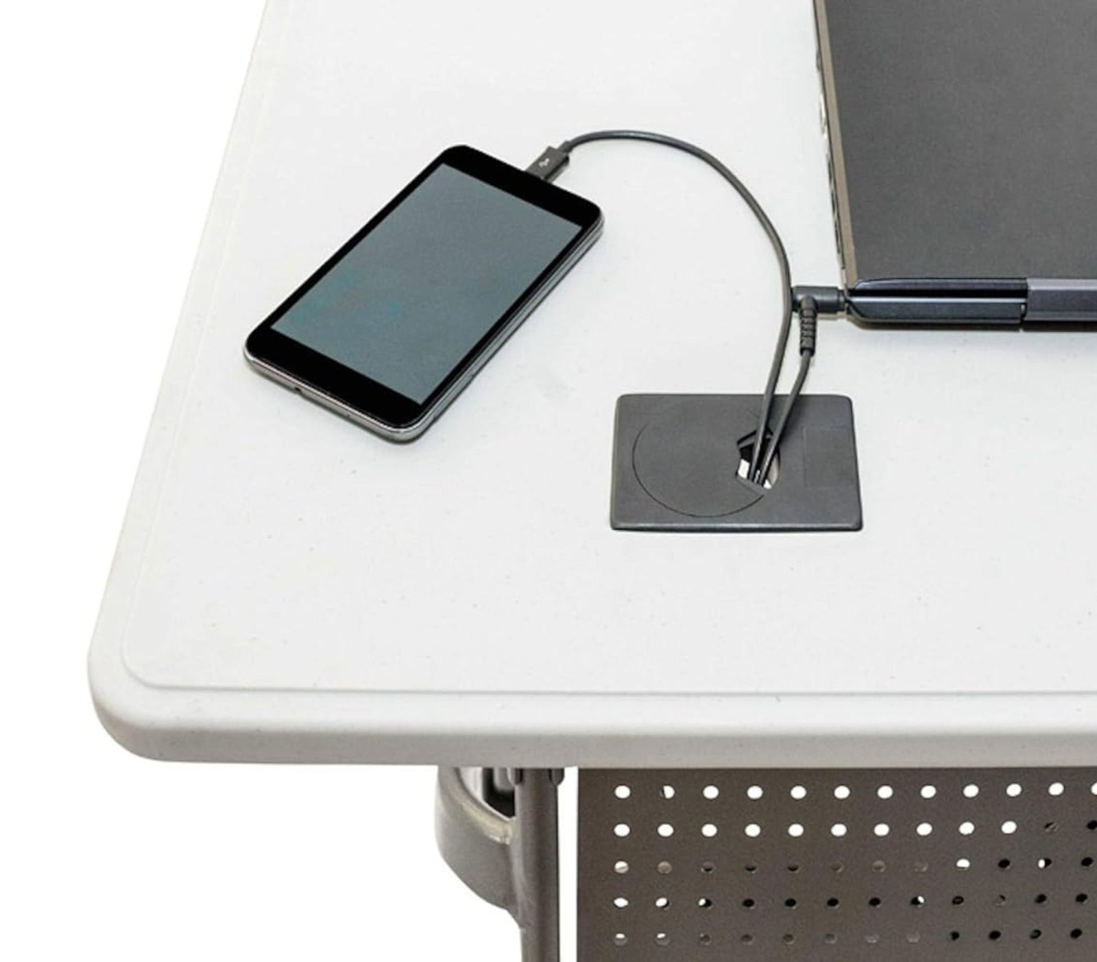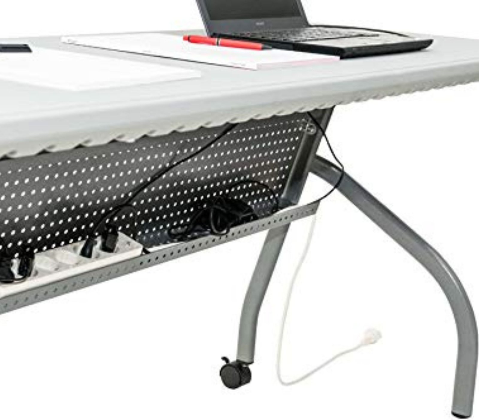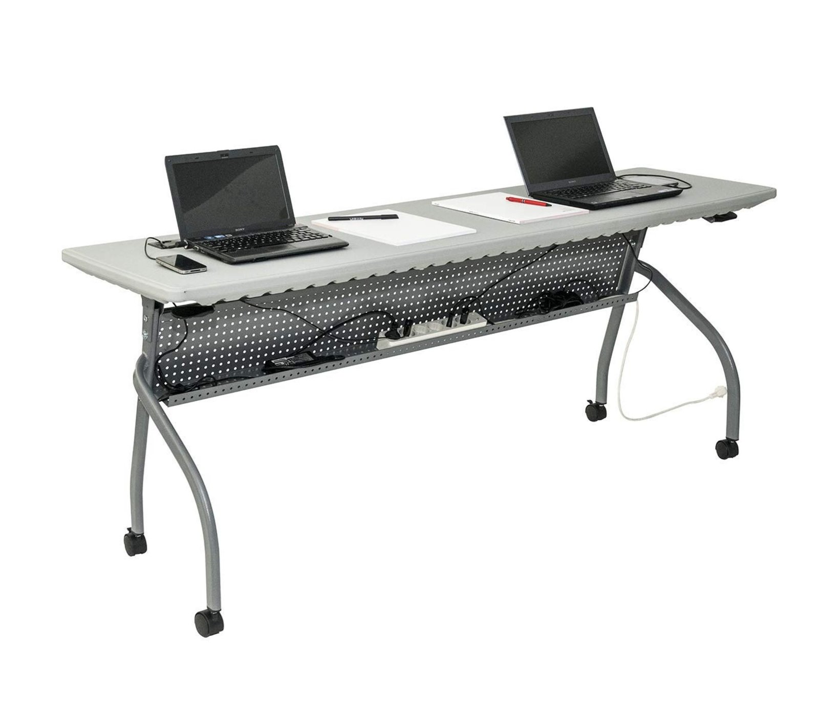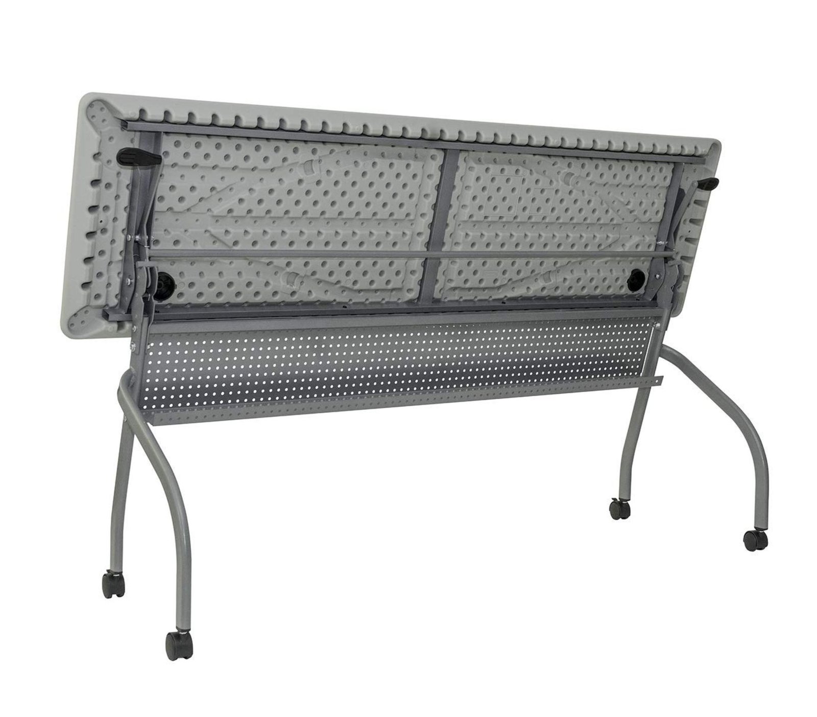 Sulankstomas darbo stalas OXFORD – tai stalas su dviem angoms nešiojamo kompiuterio, telefono ar spausdintuvo kabeliams. Stalo viršus pagamintas iš HDPE medžiagos (termoplastiko), todėl yra tvirtas, atsparus smūgiams bei vandeniui, bet lengvas ir ilgaamžis. Stalas yra elegantiškas, praktiškas ir modernaus dizaino.