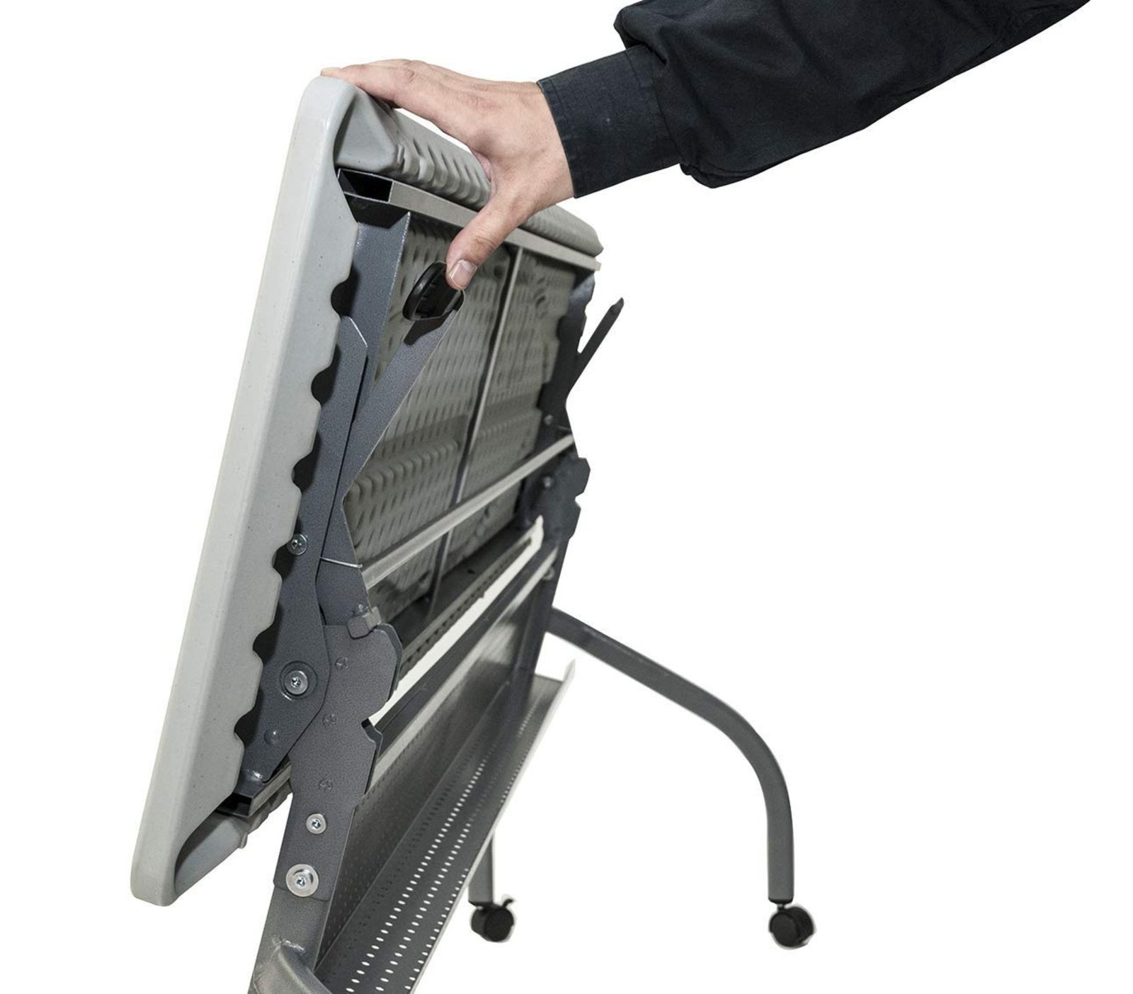 Sulankstomas darbo stalas OXFORD turi keturis ratukus, kad būtų lengva jį perstumti, kai tampa nebereikalingas. Sulankstomas fiksuojamas stalviršis yra su specialiu mechanizmu, leidžiančiu jį nuleisti sklandžiai ir be smūgių. Prie stalo gali susėsti net trys žmonės ir vienam žmogui bus skirta 61 cm.